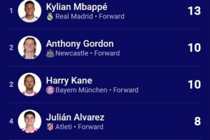 值得注意的是,数据统计显示,本赛季欧冠到目前为止,射手榜和助攻榜前两名都是这两队的球员(纽卡的安东尼·戈登与凯恩并列射手榜第二)