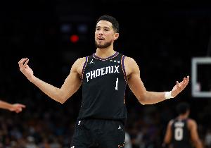 本场比赛太阳在罚球线上32罚23中,罚丢了9个球,最后只输了4分。其中主将德文·布克罕见罚丢5个。