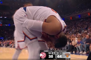 GIF-库明加肘到了唐斯面部,这球吹了唐斯犯规