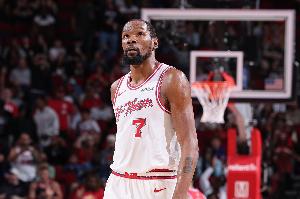 体育资讯04月19日讯 据ESPN名记Shams报道,火箭当家球星凯文·杜兰特因右膝挫伤将缺席今日与湖人的系列赛G1。