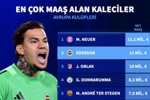 德转列欧洲俱乐部门将净年薪:诺伊尔1110万欧第一,埃德松第二