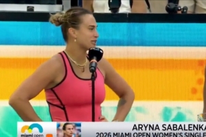 体育资讯3月29日讯 在2-1击败高芙夺得WTA1000迈阿密冠军后,萨巴伦卡在颁奖典礼上发表了演讲。